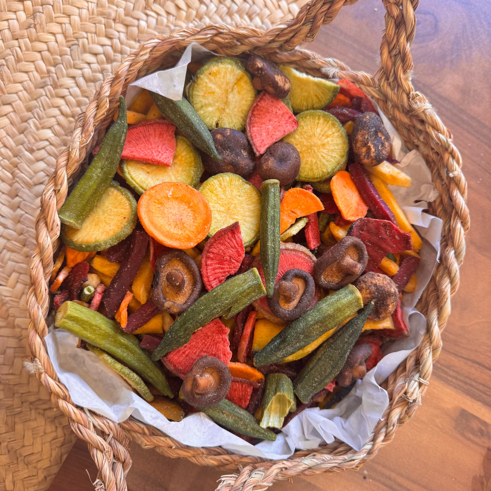 ميكس خضروات مقرمشة يحتوي على ( البامية - المشروم - الفجل الاخضر - الفجل الأحمر - البطاطا الحلوة - البطاطس - البنجر - البطاطا الحمراء - فاصوليا - الجزر - القلقاس - قرع العسل )